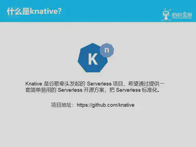 这是 Knative 的项目定义,注意这句话里面几个关键字:kubernetes,serverless,workload。