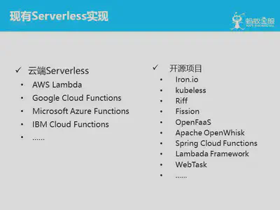 我们来看一下,在 knative 出来前,serverless 领域已有的实现,包括云端提供的产品和各种开源项目。
