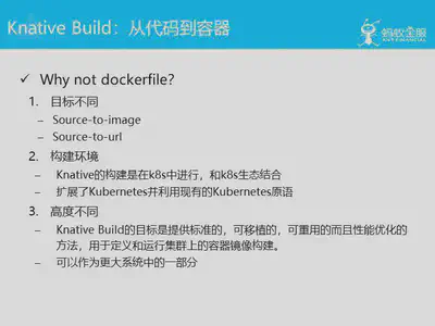 Knative Build 组件,实现从代码到容器的目标。为什么不直接使用 dockfile 来完成这个事情?