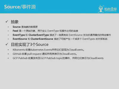 Knative Eventing 组件负责事件绑定和发送,同样提供多个抽象概念:Flow,Source,Bus,以帮助开发人员摆脱概念太多的负担(关于这一点,我保留意见)。
