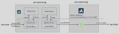根据该规则,kong 直接把 target 为 serviceb:8080 的请求直接投递给 serviceb。最终完成整个请求路由过程。