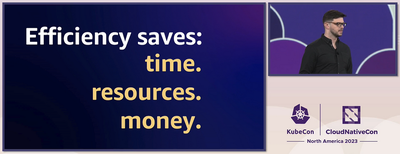 我们列表中的下一个主题来自 AWS Kubernetes 产品负责人 Nathan Taber。AWS 代表已将过去十年的 Kubernetes 与之前的 CPU 技术流程缩小(晶体管尺寸)相比,以提高能效和性能。效率应该是第一优先级,因为这可以节省时间、资源和金钱。