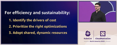 此外,任何平台上使用 Kubernetes 都会影响能源足迹,因为它提供了按需共享的资源,可以轻松进行水平和垂直扩展。尽管代表当然首先提到了 AWS,但他指出我们谈论的是所有遵循这种方法的云平台 — 在这里,选择权在用户手中。