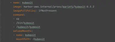 - 在initContainer中声明 kubexit,以便它将二进制文件下载到 Pod 中。 /kubexit目录是我们在 Pod 内下载和存储二进制文件的地方。