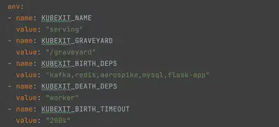 - KUBEXIT_BIRTH_DEPS:在当前容器启动之前需要正常运行的容器的名称(这可以是逗号分隔的列表)。在此声明的名称是在容器的KUBEXIT_NAME中声明的名称。