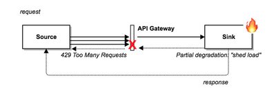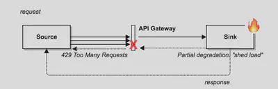 与速率限制密切相关的是“负载削减”。两者的主要区别在于判定拒绝请求的条件。速率限制是基于单个请求的属性(例如 clientId),而负载削减是基于应用的总体状态(例如,处于高负载的数据库)。如果系统仍处于部分运行状态,但是需要时间来恢复(或修复),则在流量入口点削减负载可以大量减少线上事故。
