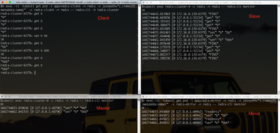 $ kubectl exec -it `kubectl get pod -l app=redis-mirror -n redis -o jsonpath="{.items[0].metadata.name}"` -c redis-mirror -n redis -- redis-cli monitor