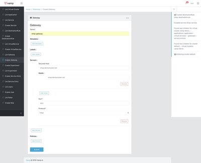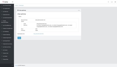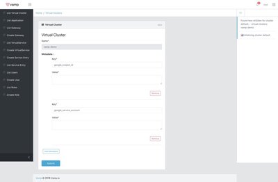 Vamp Lamia 定期检查群集并安装缺少的 Istio 组件并检测新的 deployments,建议等待“List Virtual Cluster”页面,直到看到vamp-demo namespace 出现,当它可用时你可以编辑它。