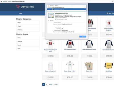 对于当前的互联网状态,拥有 SSL/TLS 证书至关重要。正如我们所提到的,由于拥有安全服务至关重要,因此谷歌和许多其他软件提供商都在推动浏览器默认使用 HTTPS。借助此功能,在 Vamp Lamia 托管集群中,可以非常轻松地设置安全服务并将其暴露给现实世界。