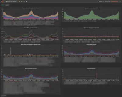 使用 Netflix 开发的 Vizceral 可视化服务配置。为了实现,我们开发了 promviz 和 promviz-front 的 fork(为了方便用 nginx 交付并符合 Cookpad 中的服务组合)。由于我们仅在某些服务中引入,因此当前显示的节点数量很少,但我们提供了以下仪表板。