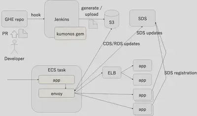 - 使用名为 kumonos 的 gem 从上面的设置文件生成 Envoy xDS API 响应 JSON