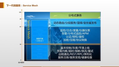 左边这个是在之前曾经做过的分享,从技术上来说,因为我们今天没讲技术,所以没有提过。从技术上说,Service Mesh 提供了一个方案,就是说将整个服务间通讯的解决方式,整个技术栈全部下移。从应用当中下移到底层的基础设施,通过加强基础设施的方式提供一个统一的解决方案,这是从技术的角度。