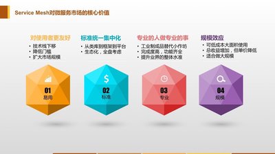 另外一个就是提高竞争力,因为 Service Mesh 代表着技术先进性,提供了一些非常强大的功能,同时它会降低客户的门槛和客户易于使用,这个对于客户而言吸引力是非常高的。