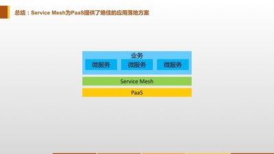 我们简单总结一下:Service Mesh 技术为 PaaS 平台提供了一个非常好的应用落地方案。