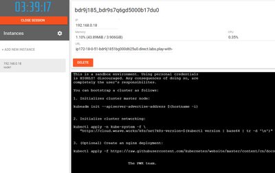 点击左侧的 “Add New Instance” 来构建你的第一个 Kubernetes 集群节点,自动命名为 “node1”,每个节点都预装来 Docker 社区版(CE)和 Kubeadm。这个节点将成为集群的主节点。