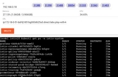 恭喜!你已经将 Istio 部署在 Kubernetes 集群上了,K8S playgroud 上已经安装的服务包括: