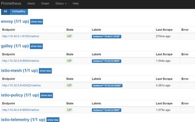 如上所示,默认会安装 Prometheus、ServiceGraph、Jaeger、Grafana 和 Zipkin。