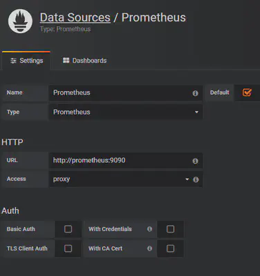 在 Grafana 页,添加 Prometheus 数据源,并确认 Dashboard 已经运行。