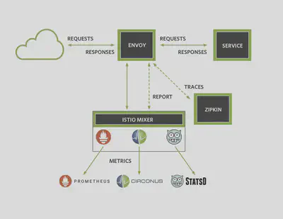 Istio 还包含了 StatsD 和 Prometheus 的 metrics 适配器。然而,Circonus 适配器与其他适配器又存在一些区别。首先,Circonus 适配器允许我们将请求持续时间作为一个直方图来收集,而不仅仅是记录固定的百分位数。这使我们能够计算任何时间窗上的任意分位数,并对所收集的直方图进行统计分析。第二,数据可以基本上永久保留。第三,telemetry 数据被保存在持久的环境中,而独立于 Kubernetes 管理的任何短暂资源之外。