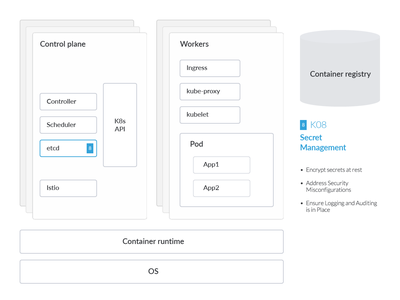 Kubernetes 使用的 etcd 数据库存在一个主要弱点,即它包含通过 Kubernetes API 可访问的所有数据,因此可能允许攻击者更长时间地查看秘密信息。这就是为什么在静态环境中加密秘密信息非常重要的原因。
