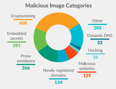 Sysdig TRT 根据几个类别收集了恶意镜像,如上所示。分析重点放在两个主要类别上:恶意 IP 地址或域名以及机密信息。这两者都对下载和部署在公共注册表(如 Docker Hub)中可用的镜像的人构成威胁,使其环境面临较高风险。