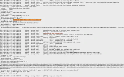 - 从上述跟踪中获取请求 ID,并在 Istio 代理日志中查找。