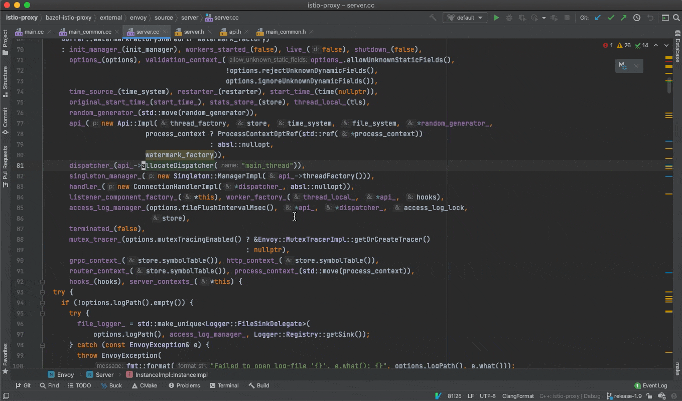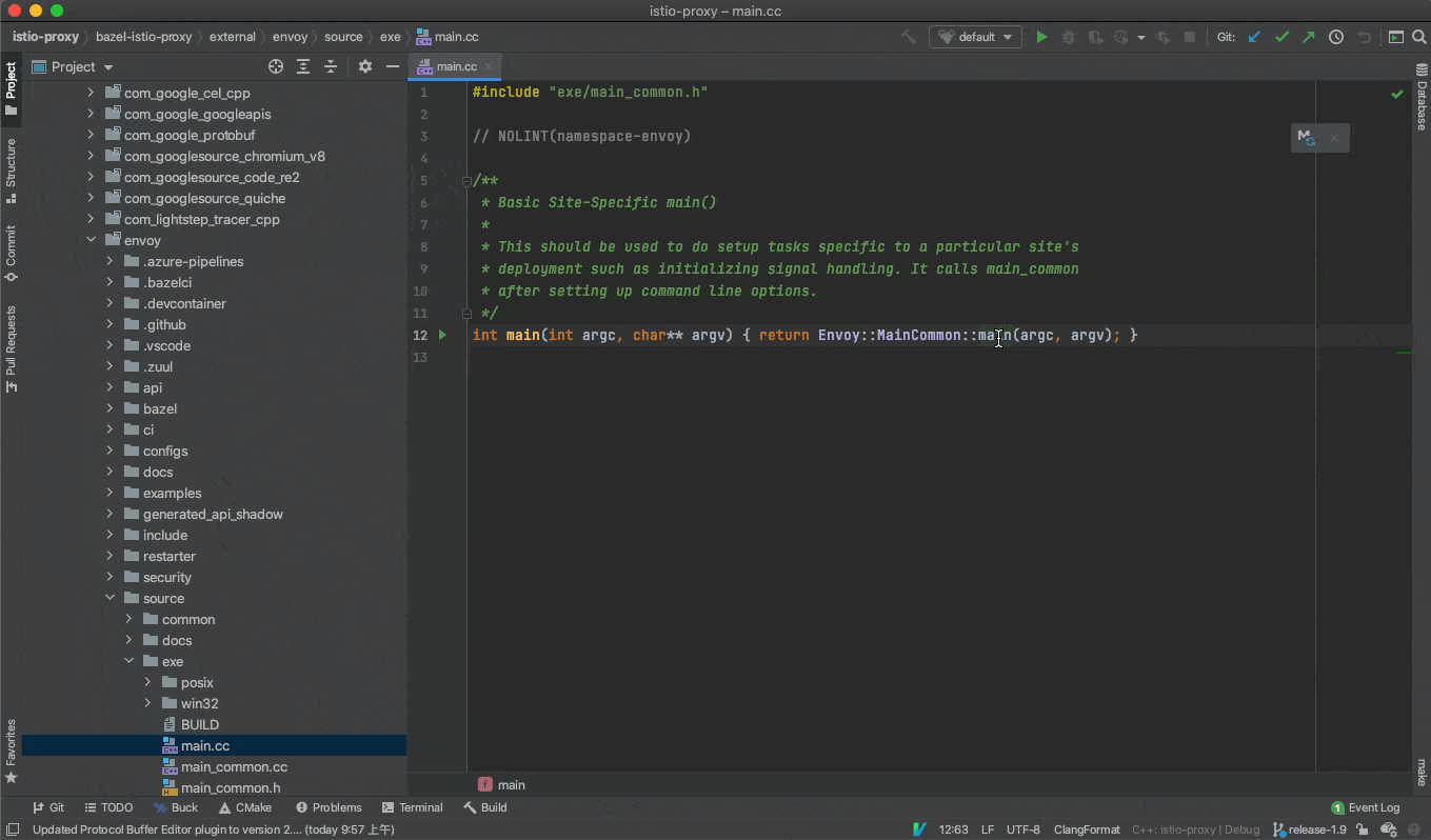 本文介绍了如何使用 CLion 来阅读 istio-proxy (envoy) 的代码,包含源码结构分析、环境搭建,以及生成 CLion 所需要的 CMakeLists.txt 文件的方法,最后也展示了效果,希望对你有所帮助。