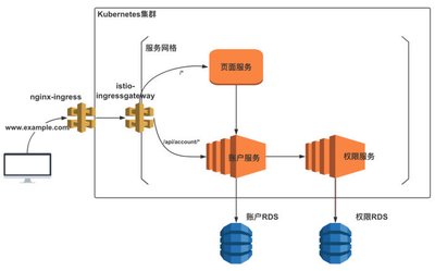 在我之前的投稿中,描绘了一个非常简单的基于 K8S 平台的业务场景,在这里我们将会基于这个场景来进行讨论。 对于一个简单的微服务场景,我们有着三个服务在 Istio 服务网格中管理。同时集群外的请求将会通过 nginx-ingress 转发给 istio-ingressgateway 以后,通过 Istio VirtualService 的 HTTPRoute 的能力转发给对应的服务,这里不再赘述。