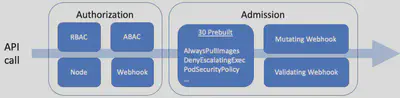 幸运的是,Kubernetes 团队预见到了这个问题,并创建了一个 Admission Control 机制,在这里你可以把控制的范围远远超过 RBAC 和标准的访问控制机制。Kubernetes API 服务器提供了一条访问控制的管道,分为 Authorization(如 RBAC),和 Admission。