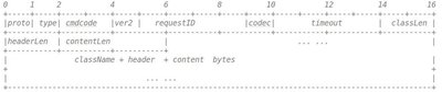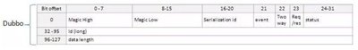 Dubbo 协议也是类似的协议头+payload 的变长结构,其协议格式如下: